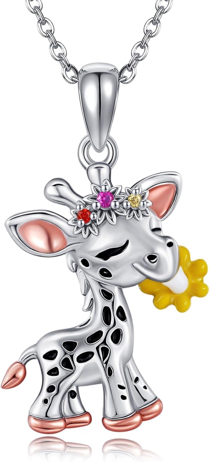 925 Sterling Silver Cute Animal Necklace Fox /Skunk/Frog/Monkey/Elephant/Owl/Schnauzer Dog /Cat/Paw Print /Giraffe/Greyhounds Pendant Jewelry Gifts for Women Lovers